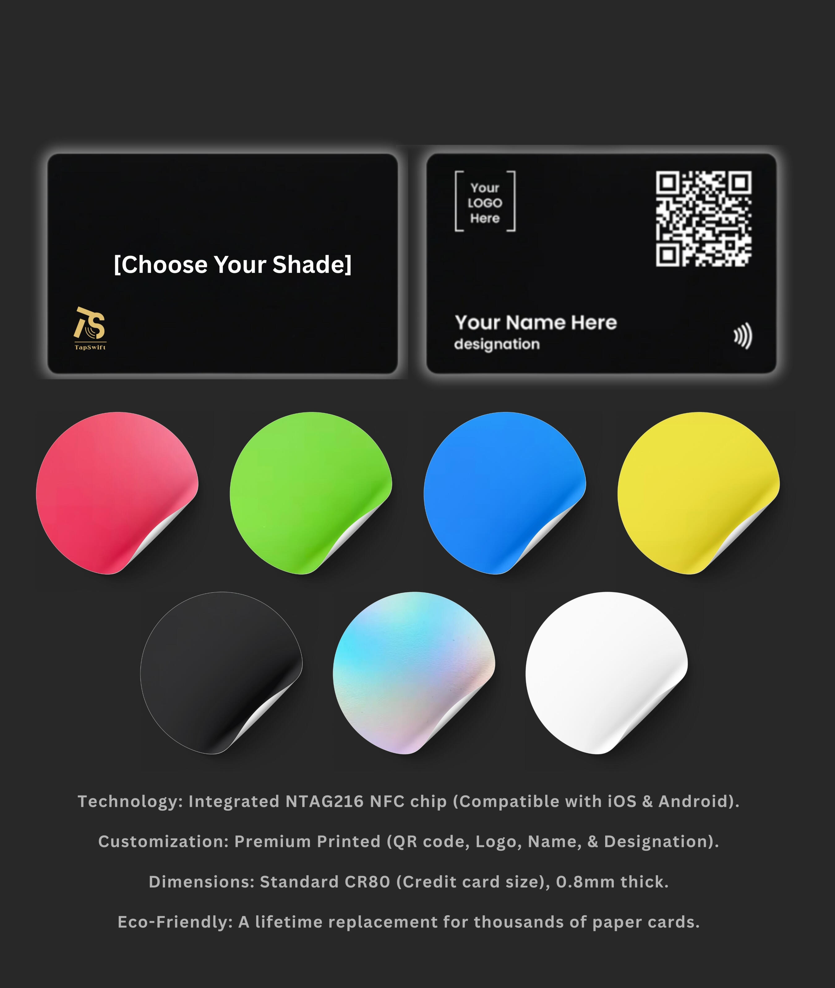 Dual-Tech Design: NFC chip embedded inside + high-resolution QR code on the back (for 100% device compatibility).