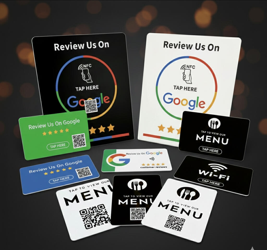The TapSwift Business Suite Bundle is designed to be a complete "Digital Ecosystem" for your physical location. Instead of just a card in your pocket, this bundle transforms your office, restaurant, or storefront into an interactive, high-tech environment.