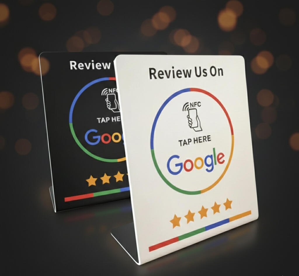 2x Branded Acrylic Display Stands: Keep your Review Cards visible, professional, and accessible at all times.